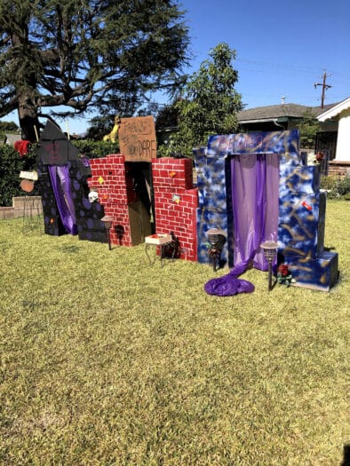 My kids were young, but I still wanted to make Halloween special. So we built a cardboard neighborhood out front. Then, I decorated all our interior doors so we could do trick or treating at home.